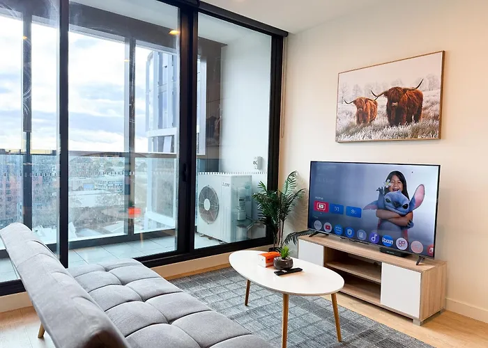 Minimalist One Bedroom Living In Cbd メルボルンアパートはトレジュアリー・ガーデンズから歩いて25分で、メルボルン観覧車からたった1.3キロメートルの場所にあります。 ビジネスやレジャーのお客様のニーズに合わせて、WiFiを提供しています。